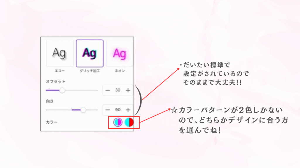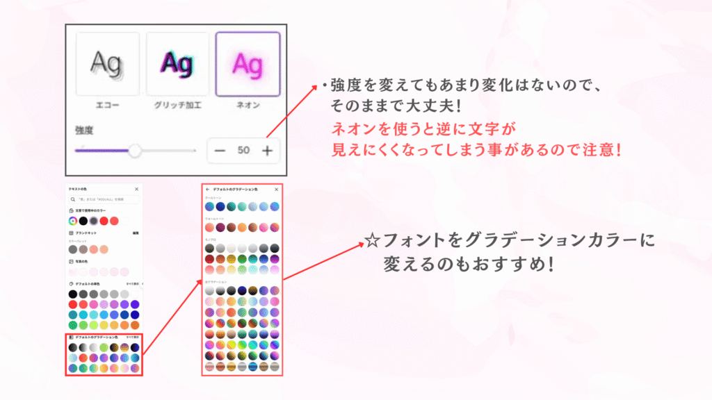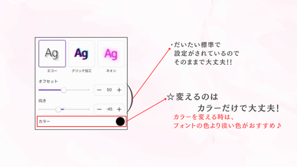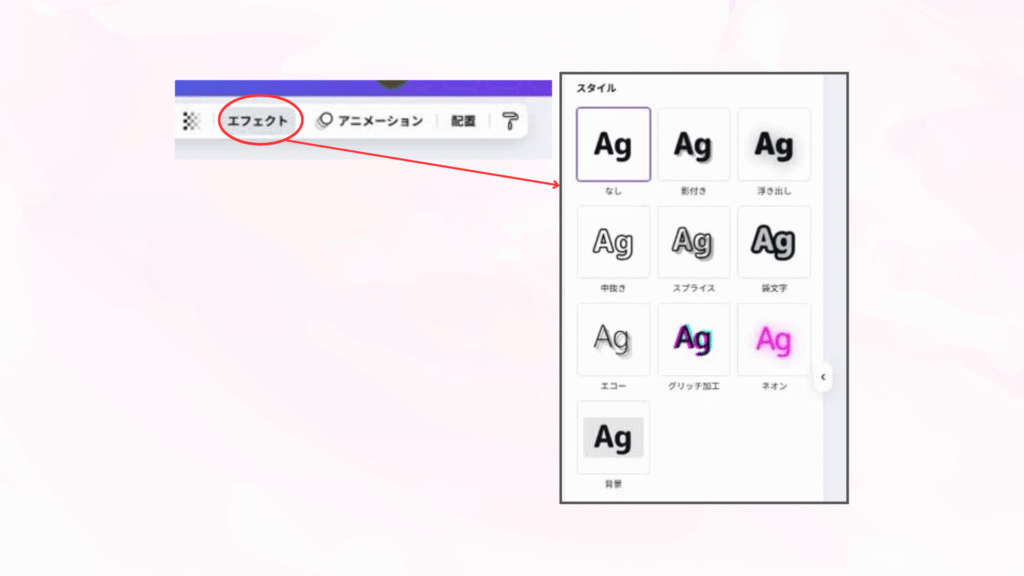 ③ 雰囲気 → エフェクト → フォント の順番で選ぶ