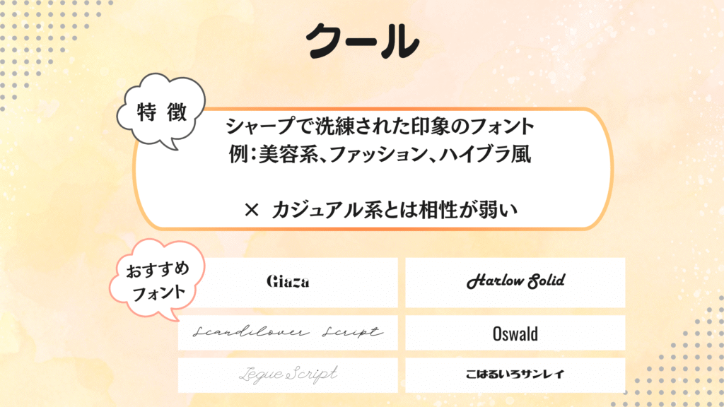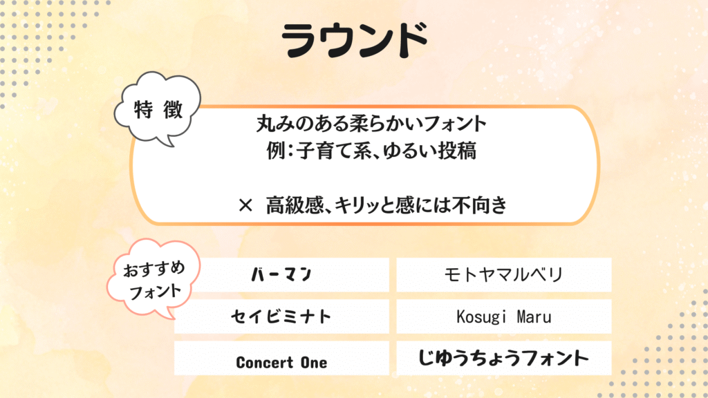 フォントの特徴や雰囲気が整理されています。