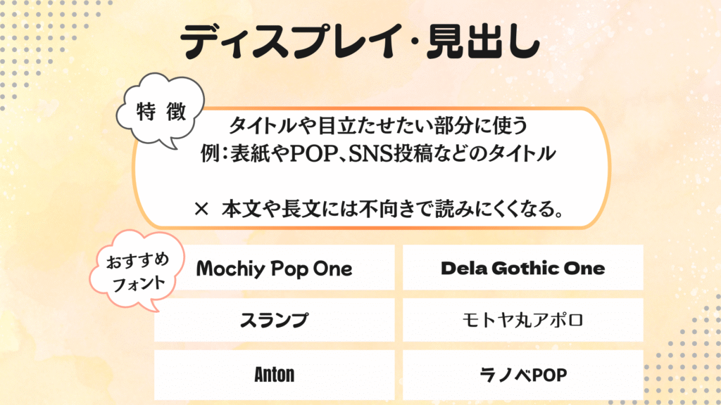 「カテゴリ別に解説&おすすめフォント」を