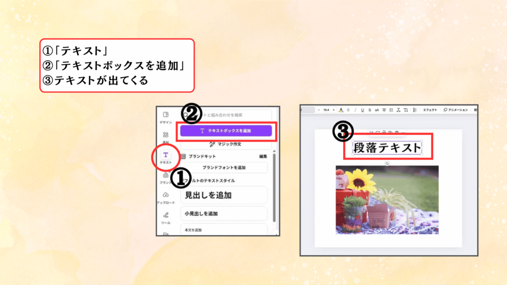 下記の流れでテキストを出します!